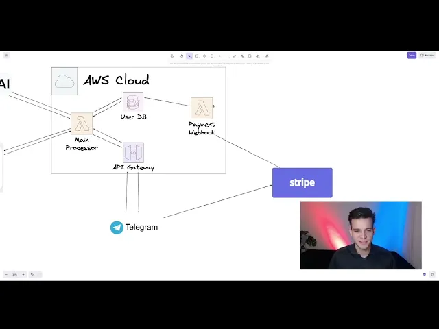 AWS infrastructure, ElevenLabs voice synthesis, OpenAI training, Stripe payments, and Telegram interface—all in one scalable coaching platform.